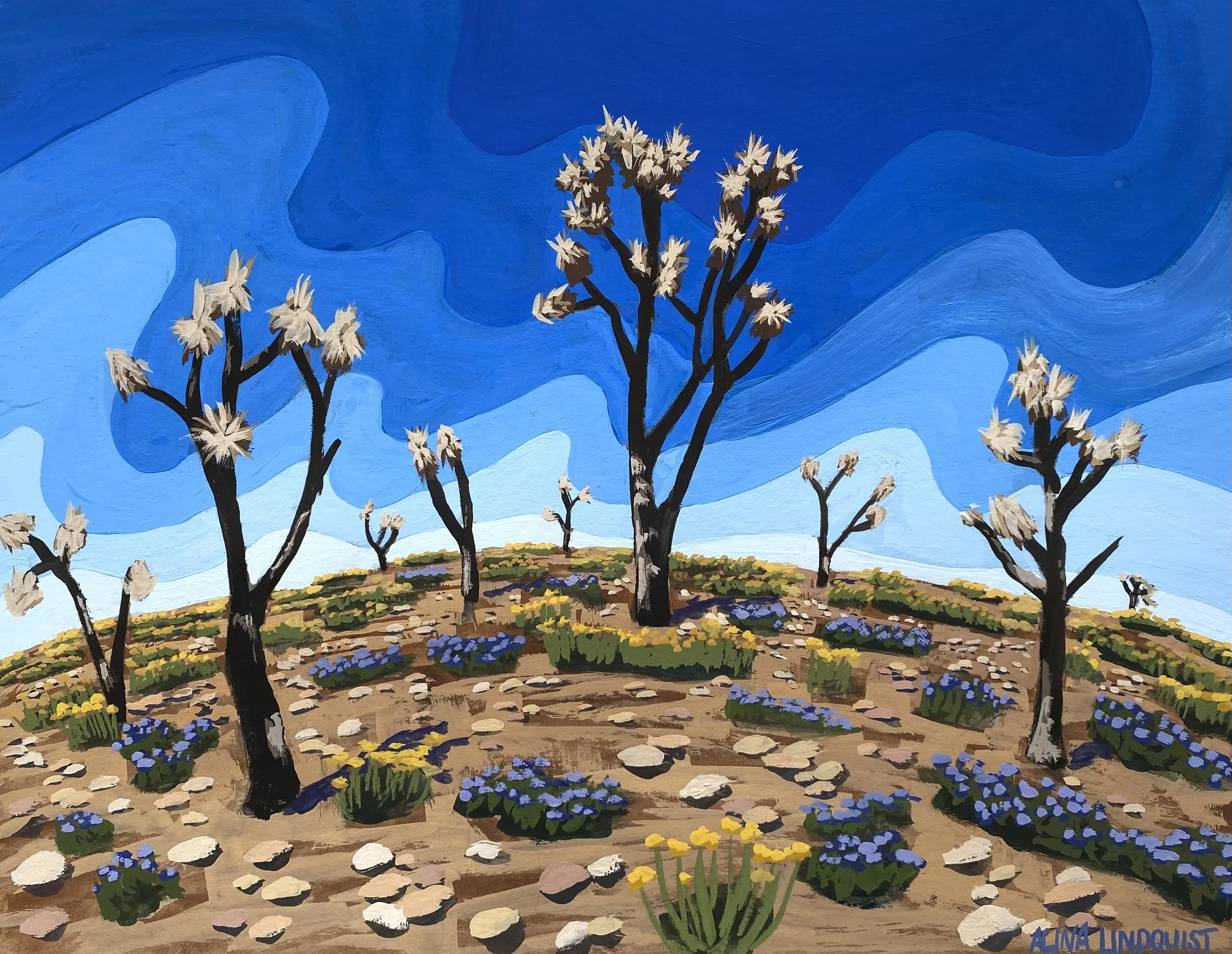 Alina Lindquist is a contemporary artist based in Las Vegas who is known for her landscape paintings of the Mojave Desert. She earned her bachelor’s degree in anthropology, art history, and art from the University of Nevada, Las Vegas (UNLV), in 2020 and will begin work on her MFA at UNLV in the fall of 2025. Lindquist held artist residencies at The Mystery Ranch (Avi Kwa Ame National Monument), Great Basin National Park, and Valles Caldera National Preserve. Lindquist’s work originates in plein-air painting, with direct experience of the land that is expanded upon back in the studio. Lindquist often exaggerates the features of the landscape to emphasize its particular characteristics. Her recent work explores the role of public lands — such as Avi Kwa Ame National Monument — highlighting the significance of conservation efforts through visual storytelling. www.alinalindquist.com @alina.lindquist