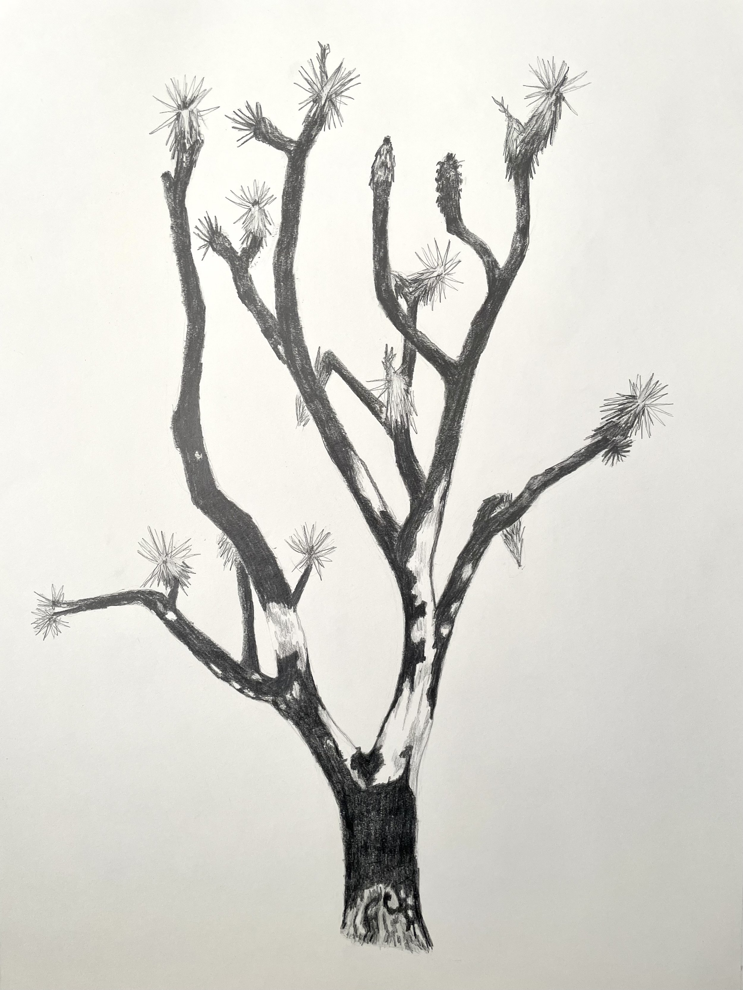 Artwork by Alina Lindquist, Portrait of a Joshua Tree: After the York Fire, graphite on paper.