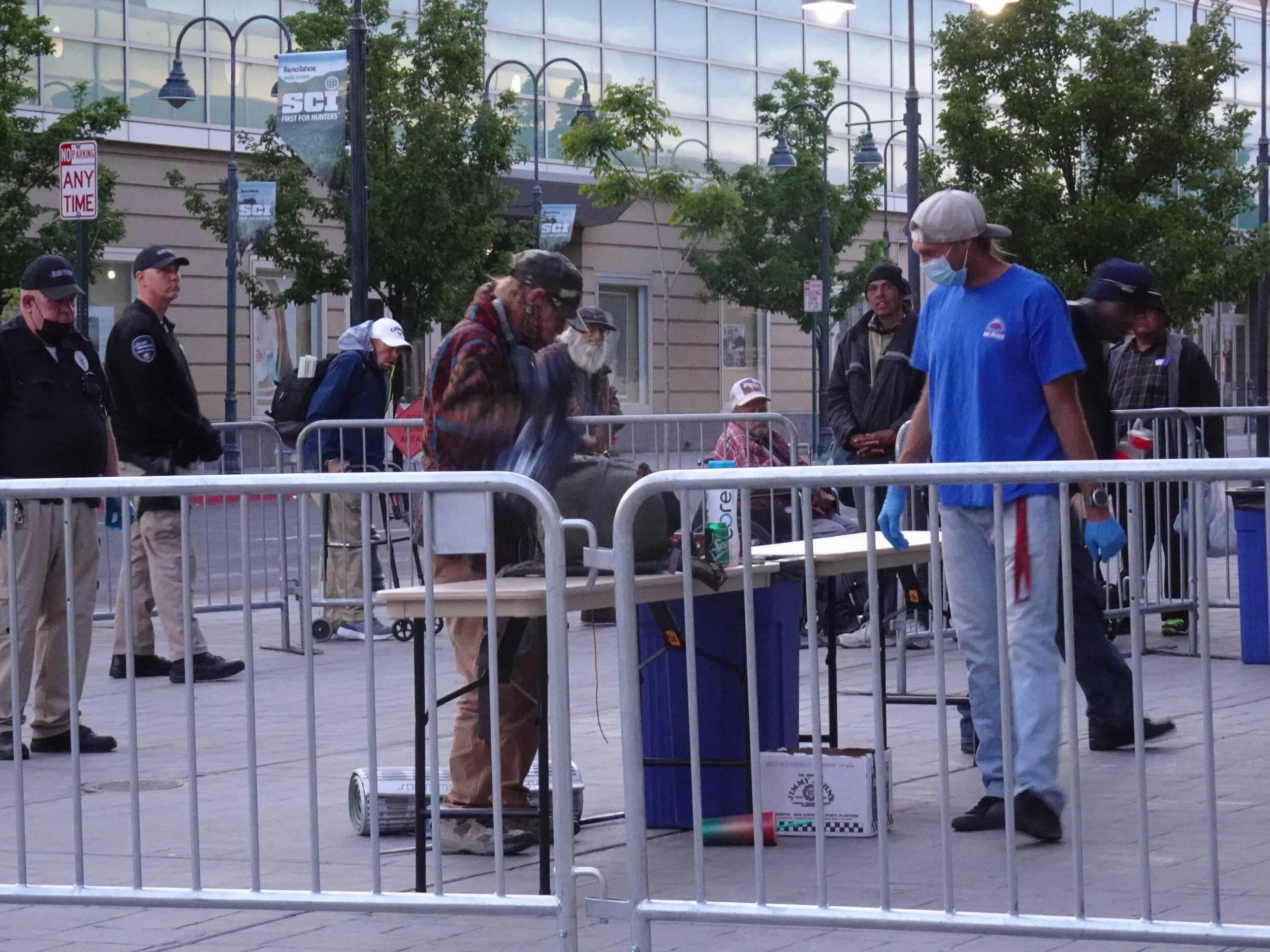 One of those waiting in line was Nick Hardesty, a gruff 62-year-old wearing a Stetson cowboy hat. Hardesty was still trying to make up his mind if he would sleep at the Events Center or not. He’d only arrived from California about a week ago where public bans and shutdowns started earlier than in Reno.