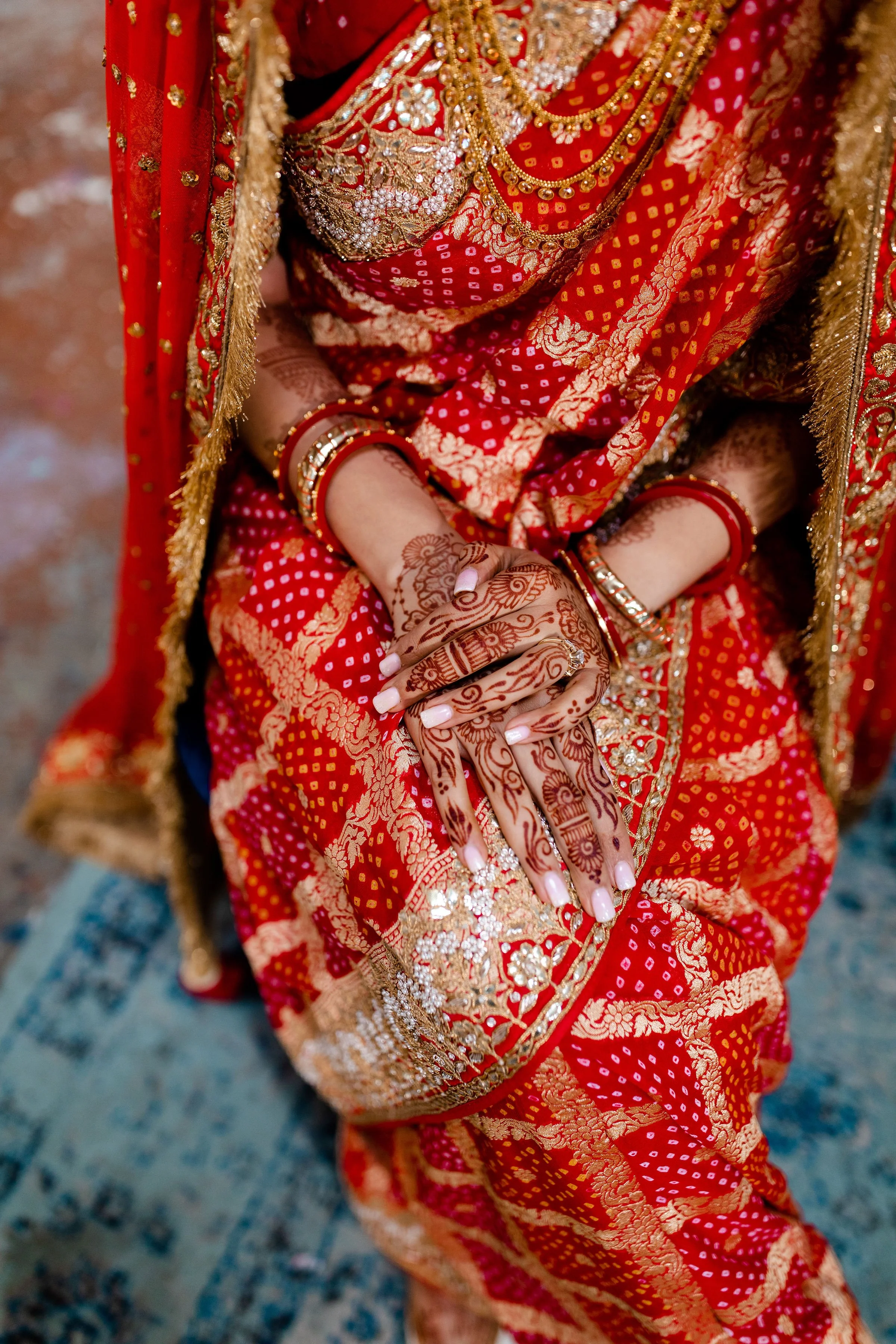 Soft pink, radiant bursts of red, and deep marigold petals fly through the air and land on my feet. I take one step at a time with my husband-to-be, making sacred vows said from the oldest language in the world. Each step I see my feet peek through my saree, showing elaborate and delicate details of flowers, petals, and patterns. I am getting married to the one who I chose as my lifelong companion.