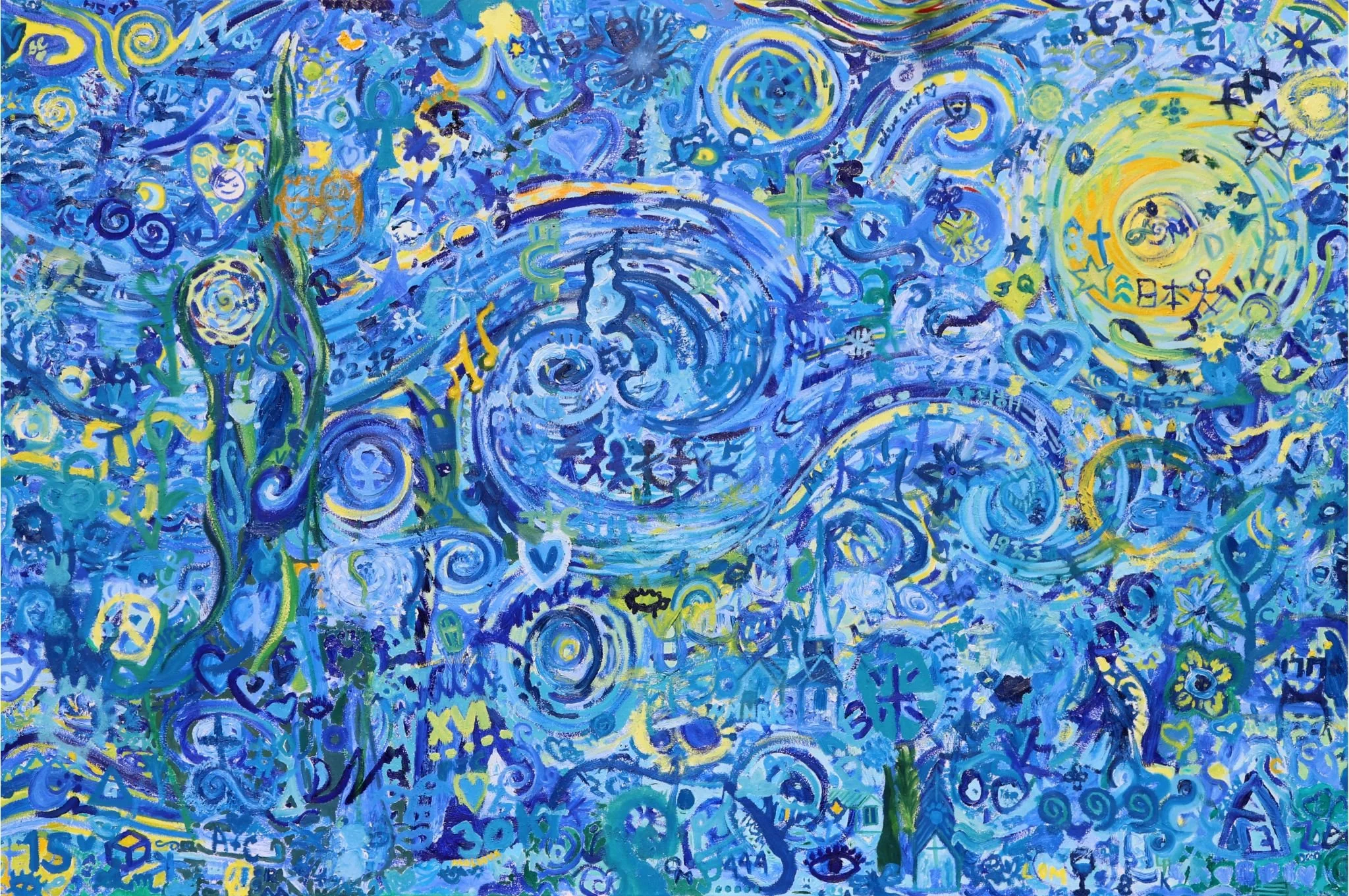 I have always been passionate about art. I create works of art that are relevant to my time and space that express emotions and have stories to tell. As a teenager, I wanted to create important artwork for my community, and so I did. From making monumental murals in my middle school to large paintings in college, I have always had this desire to create works of art for my community. On my middle school wall, I painted cougars of different colors. This represented the diversity of my school, and how like cougars we all had our own essence and uniqueness. In college, I painted women representing the strength of our continent, from the top of Canada to the tip of Chile. All of them wore their nations in their dresses. My goal was to show we are one, united. Somewhere along the road of life I became an accountant. I found great joy in helping others, but when COVID-19 hit the world, everything stopped. As the world closed, everything changed. I myself changed. I had the time once again to create. The pandemic for me was a time to rediscover and reinvent myself. When 2021 rolled around I received a great opportunity when I applied and became the first artist-in-residence at the world renowned Immersive Van Gogh Exhibit in Las Vegas, located at the Crystals in City Center. This was my opportunity to consistently create art in a nurturing environment that helped me explore my own artistic expressions. I had the idea to create a connection with what people were experiencing during COVID-19.